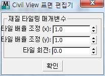 - U 또는V축의 배율을 변경하거나 회전을 지정하여 텍스처 맵의 타일링을 수정할 수 있는 대화상자를 열려면 클릭합니다.