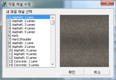 - 재질 ID가 나열된 대화상자를 표시하여 선택한 면의 새 하위 재질을 선택하려면 클릭합니다.