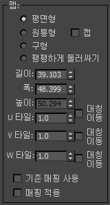 비트맵 재배치용 매핑 매개변수를 포함합니다. UVW 맵 수정자를 참조하십시오.