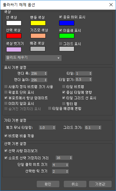 UVW 격자선의 색상을 지정합니다. 기본값은 흰색입니다.