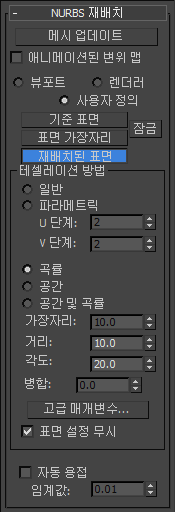 NURBS 재배치용 롤아웃을 이용하면 메시를 만들기 위한 표면 근사값 설정을 선택할 수 있습니다.