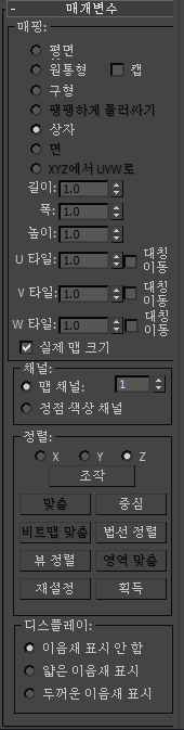 좌표 롤아웃에서 맵 채널 매개변수가 활성화됩니다. 값은 1로 유지합니다.