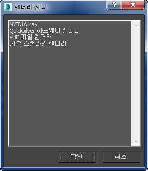 렌더러 할당 롤아웃에서 렌더러 선택("...") 버튼 중 하나를 클릭하면 이 대화상자가 나타납니다.