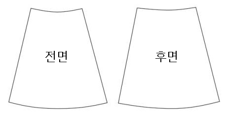 가장 단순한 것은 두 조각으로 이루어진 스커트 패턴으로, 앞과 뒤의 모양이 유사합니다. 힙과 엉덩이를 고려하여 뒤쪽 모양이 앞쪽보다 조금 더 큽니다.