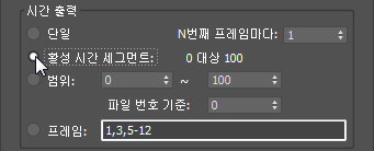 - 시간 출력 그룹에서 활성 시간 세그먼트를 켭니다. 설정을 단일로 유지하면 현재 표시된 프레임만 렌더링됩니다.