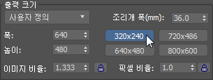 - 출력 크기 그룹에서 기본값(640 x 480)을 320 x 240으로 변경합니다.