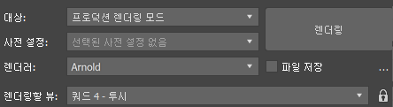 - 렌더 설정 창의 맨 위에서 렌더러를 Arnold로 설정합니다.