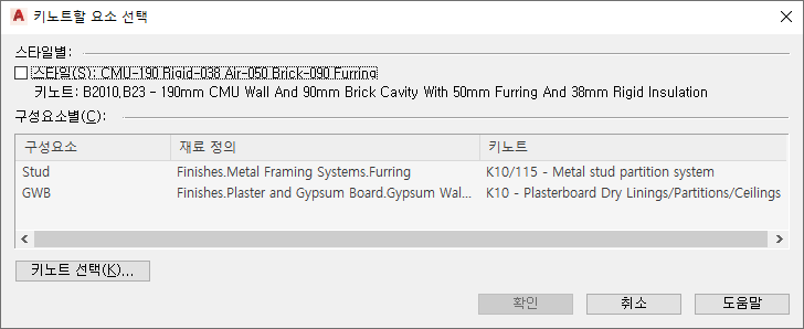 키노트할 요소 선택 대화상자가 표시됩니다. - 객체 구성요소를 키노트할 경우, 구성요소 열에서 구성요소를 선택한 후 확인을 클릭합니다.