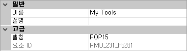 • 별칭 상자에서는 이미 로드된 풀다운 메뉴 숫자를 기준으로 새 메뉴에 별칭이 자동으로 지정됩니다. 예를 들어, 별칭 지정이 POP12인 경우 이미 11개의 풀다운 메뉴가 로드되었다는 것을 뜻합니다. 필요한 경우 별칭을 편집합니다.
