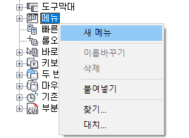 메뉴 항목의 캡션 변경