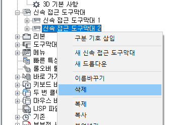 명령 또는 컨트롤 제거(CUI 편집기)