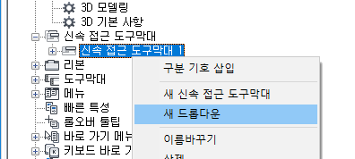 신속 접근 도구막대의 맨 아래에 새 드롭다운(이름: New Drop-down)이 추가됩니다.