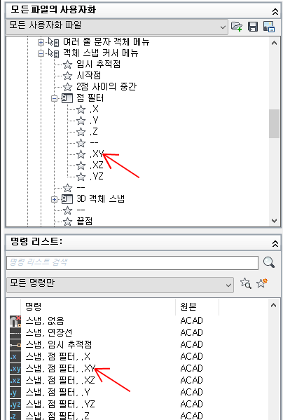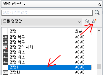 리스트가 필터링되어 로드된 사용자화 파일에 추가된 사용자 정의 명령만 표시됩니다.
