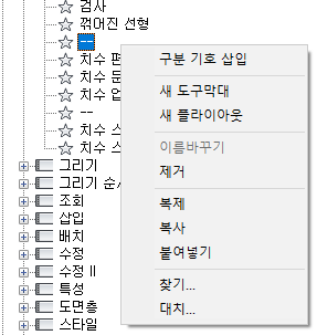 - 사용자화 탭의 명령 리스트 창에서 복제할 명령을 찾습니다.