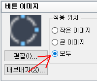 버튼 이미지 창의 적용 위치 아래에서 작은 이미지, 큰 이미지 또는 모두 중 원하는 이미지 지정 옵션을 선택합니다.