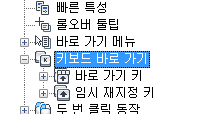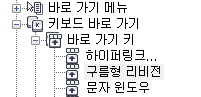 - 사용자화 탭에 있는 <파일 이름>의 사용자화 창에서 키보드 바로 가기 노드를 선택합니다.