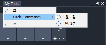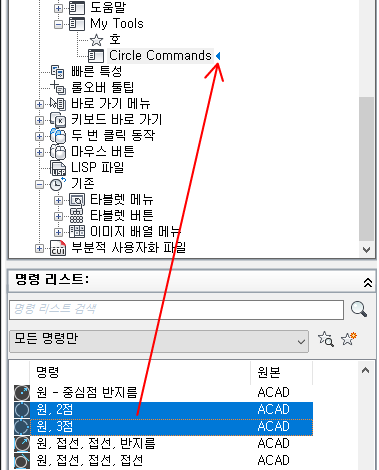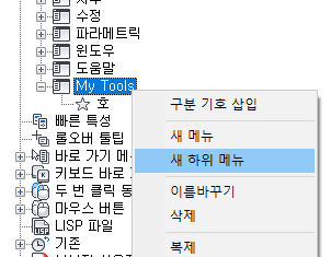 명령 리스트 창에서 하위 메뉴에 추가할 명령을
