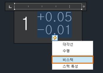 공차 스택을 작성하려면 탈자 기호(^) 앞뒤에 숫자를 입력합니다. 예를 들어 1 +0.05^-0.01을 입력한 다음 스페이스바를 누릅니다.
