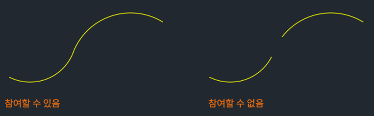 여러 선을 선택할 수 있습니다. 객체가 끝과 끝이 접하지 않거나 동일선상에 있지 않으면 JOIN 명령 수행 시 객체를 무시합니다.