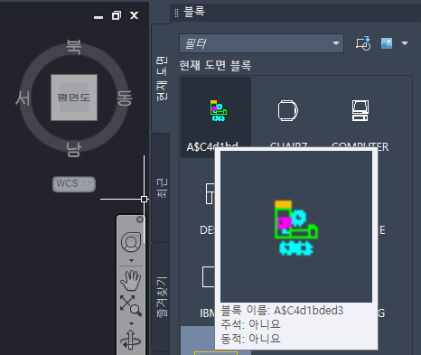 선택한 객체가 도면에 블록으로 붙여 넣어집니다.