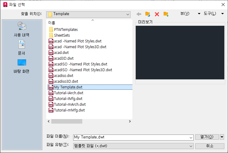 이제 새 도면을 시작할 때 AutoCAD에서 MyTemplate을 사용합니다.