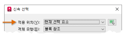 현재 도면층 001 abc에 있는 모든 블록이 선택됩니다. 아래와 같이 적용 대상 필드가 자동으로 현재 선택 요소로 전환된 것을 볼 수 있습니다.