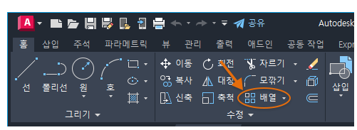 홈 탭 > 수정 패널 > 직사각형 배열을 클릭합니다.