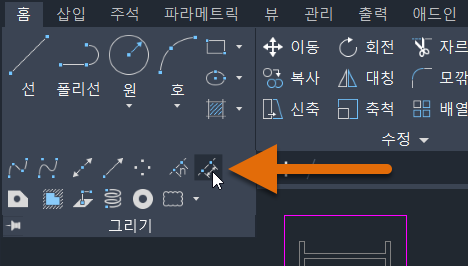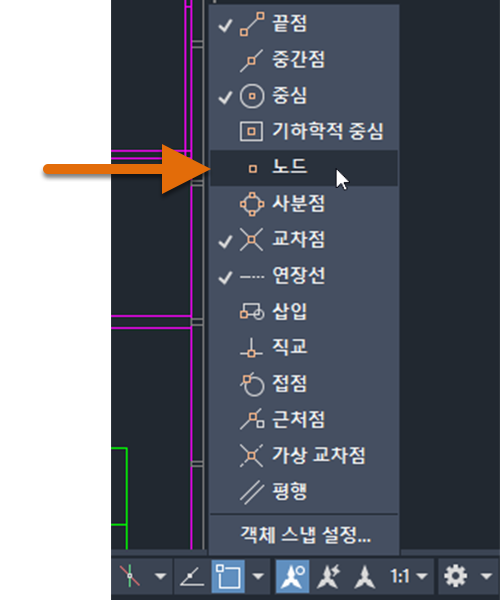 켜면, 객체 스냅 버튼의 배경색이 파란색이 됩니다.