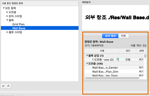 이제 현재 도면에서 외부 참조로 부착된 도면 파일에 대한 변경 사항을 비교하고 볼 수 있습니다.