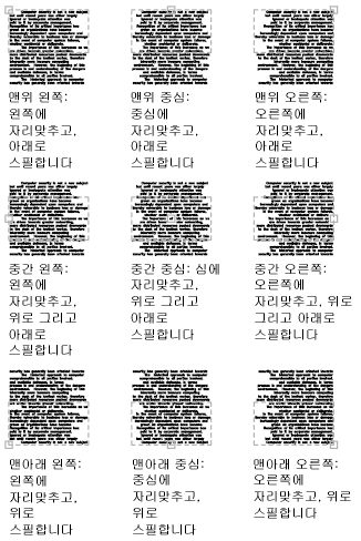 여러 줄 문자에 대한 9가지 자리맞추기 설정이 있습니다.