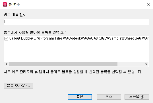 현재 뷰 범주에 적절한 콜아웃 블록을 나열하는 방법을 제공합니다.