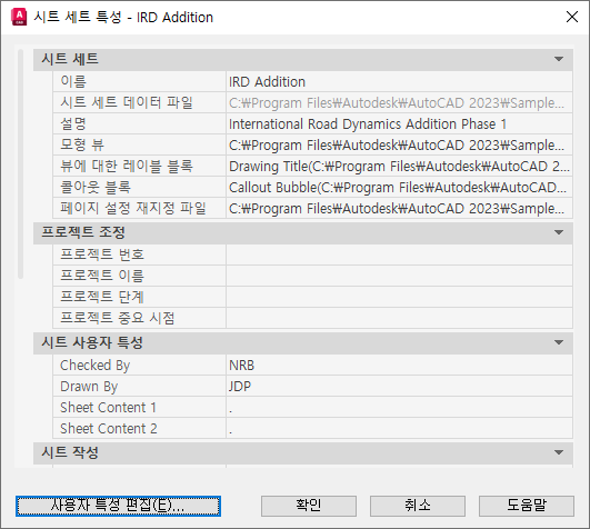 시트 세트에서 사용되는 도면이 들어 있는 폴더의 경로 및 이름을 표시합니다.
