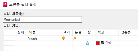 사용자가 지정한 기준에 따라 도면층 리스트를 필터링합니다.