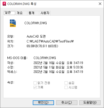 파일이 시스템 파일임을 나타냅니다. 도면은 시스템 속성 세트를 가질 수 없습니다.