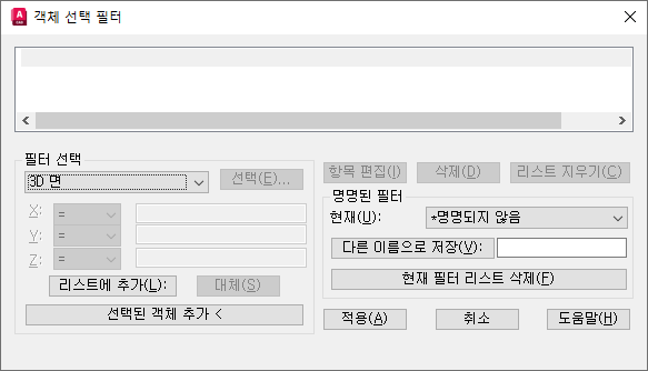 도면에 있는 선택된 한 객체를 필터 리스트에 추가합니다.