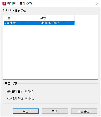 찾기 테이블에 아직 추가되지 않은 매개변수 리스트를 표시합니다. 매개변수를 선택하고 확인을 클릭하여 해당 매개변수를 찾기 테이블에 추가합니다.