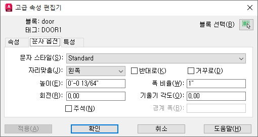 속성 문자의 문자 스타일을 지정합니다. 이 문자 스타일의 기본값이 이 대화상자에 표시된 문자 특성으로 지정됩니다.