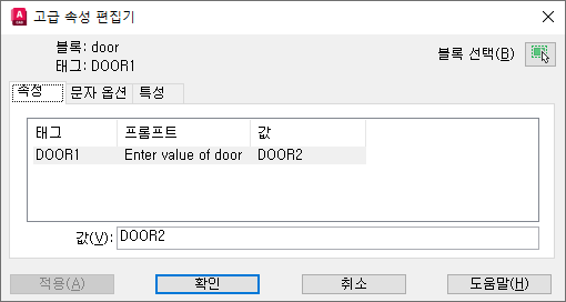 사용자의 좌표 입력 장치로 블록을 선택하는 동안 대화상자가 임시적으로 닫힙니다.