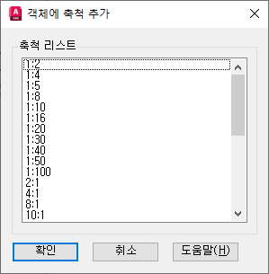 선택한 주석 객체에 추가될 수 있는 축척 리스트를 표시합니다.