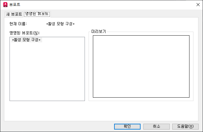 명명된 뷰포트 탭—모형 공간(뷰포트 대화상자)