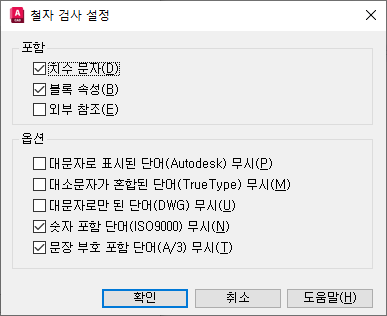 도면에서 확인할 특정 문자 옵션을 지정합니다.