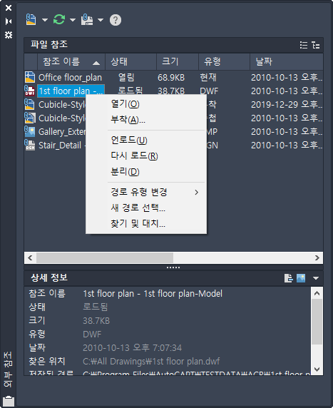편집하기 위해 선택한 참조에 외부 참조나 블록 정의가 부착되어 있는 경우, 참조 편집 대화상자에 해당 참조 및 내포된 참조들이 표시되며 선택할 수 있습니다. 내포된 참조는 편집하기 위해 도면에서 선택한 객체가 내포된 참조의 일부인 경우에만 표시됩니다. 한 번에 하나의 참조만을 선택하여 편집할 수 있습니다. OLE 객체가 포함된 참조를 편집하는 경우, OLE 객체가 표시되지만 편집하기 위해 선택할 수는 없습니다.