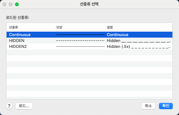 선택된 선종류를 도면에 로드하고 선종류 리스트에 추가할 수 있는 선종류 로드 또는 다시 로드 대화상자를 표시합니다.