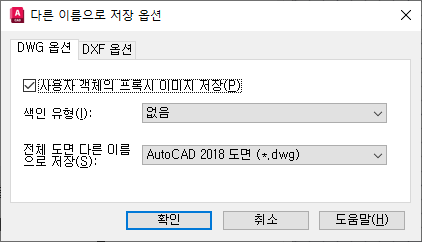 3. 다른 이름으로 저장 옵션 대화상자의 색인 유형에서 도면층, 공간 또는 도면층 및 공간을 선택한 다음 확인을 클릭합니다.
