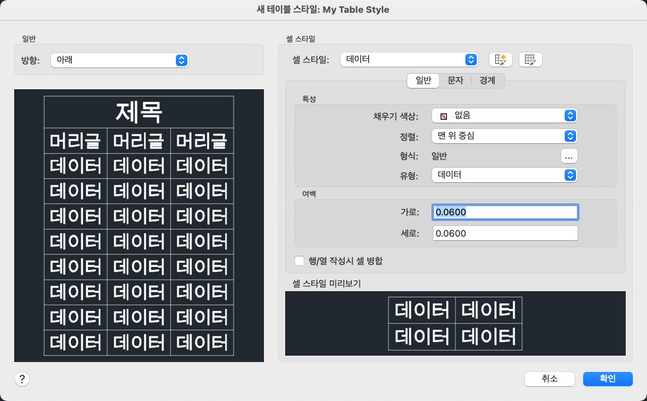 새 테이블 스타일 작성 대화상자가 표시됩니다.