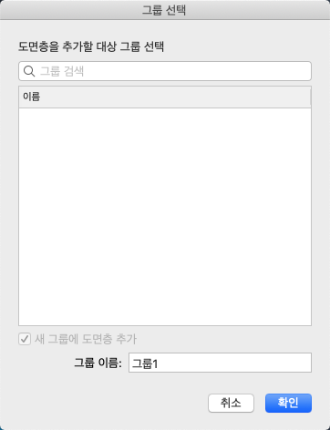 도면층을 추가할 그룹 선택