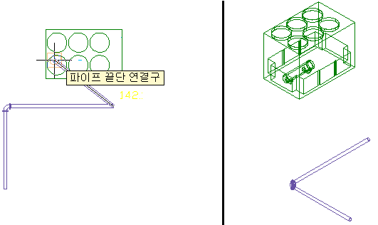 (그립 추가)를 클릭합니다. 커서를 냉온수기 연결로 이동하고 파이프 끝 연결구를 클릭합니다.