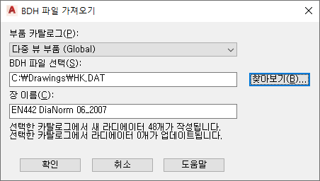 라디에이터 폴더에서 지정된 폴더 이름 아래의 부품이 업데이트됩니다. AutoCAD MEP 2023 toolset에서는 BDH 파일에 지정된 하위 장 이름에 따라 부품을 구성하고 기존 라디에이터도 업데이트합니다.