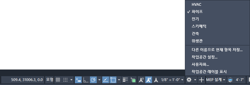 작업공간을 활성화하려면 응용프로그램 상태막대의 드롭다운 리스트에서 작업공간 이름을 선택합니다.