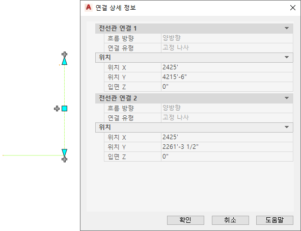 다음 절차를 사용하여 연결 상세 정보 워크시트에서 덕트, 덕트 부속, 플랙시블 덕트, 파이프, 파이프 부속, 플랙시블 파이프, 전선관 또는 전선관 부속에 대한 연결 관련 특성을 볼 수 있습니다.